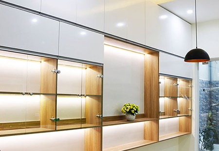 *Chất liệu: Phòng bếp sử dụng chất liệu gỗ MFC chống ẩm An Cường phủ Acrylic và Melamin. Các đồ nội thất còn lại sử dụng gỗ MDF, MFC lõi xanh chống ẩm phủ Acrylic An Cường, sơn bệt 2K. Sàn Lucsy độ dày 12mm, siêu chịu nước.
